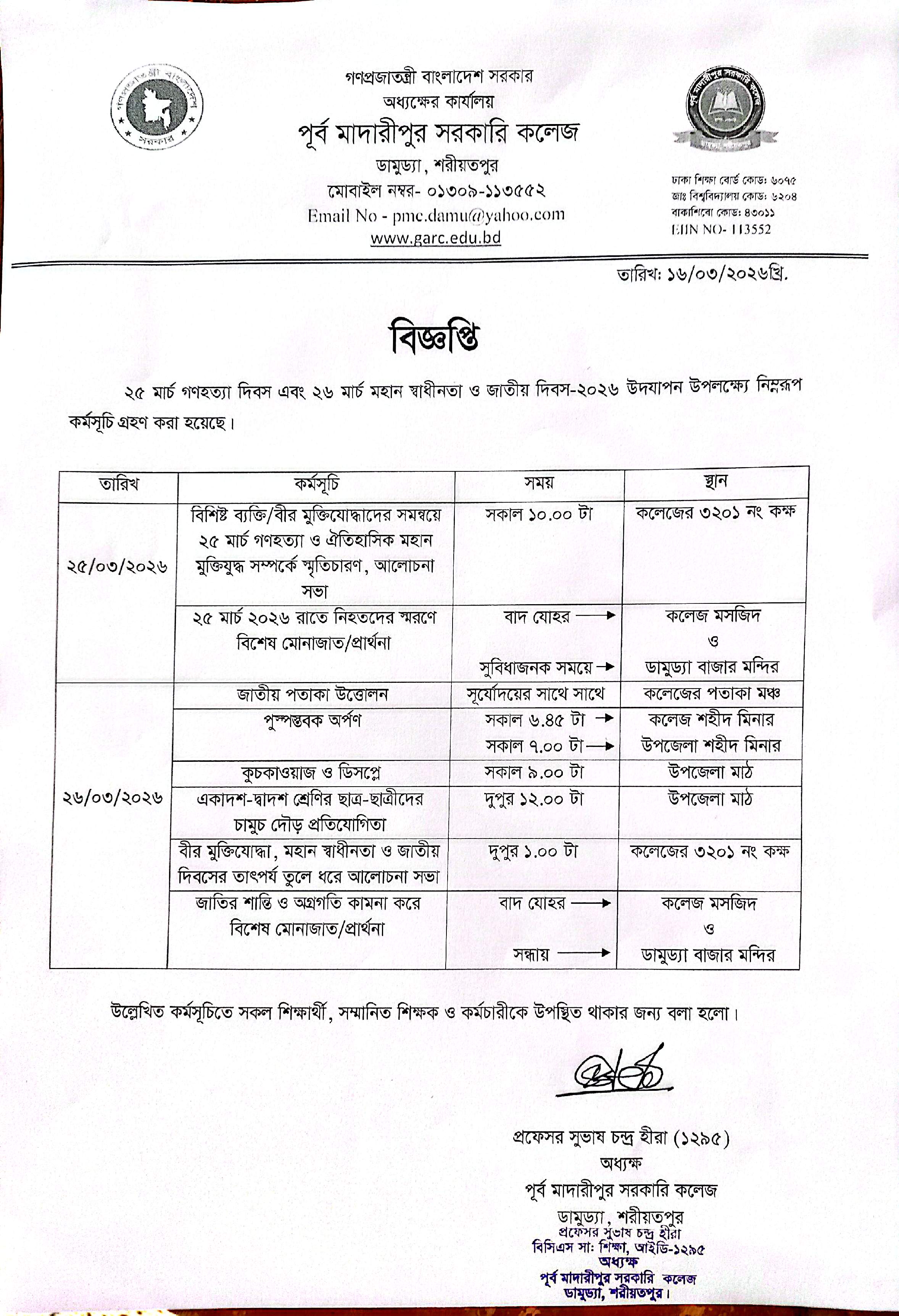 ২৫ মার্চ গণহত্যা দিবস এবং ২৬ মার্চ মহান স্বাধীনতা ও জাতীয় দিবস-২০২৬ উদযাপন সংক্র.....