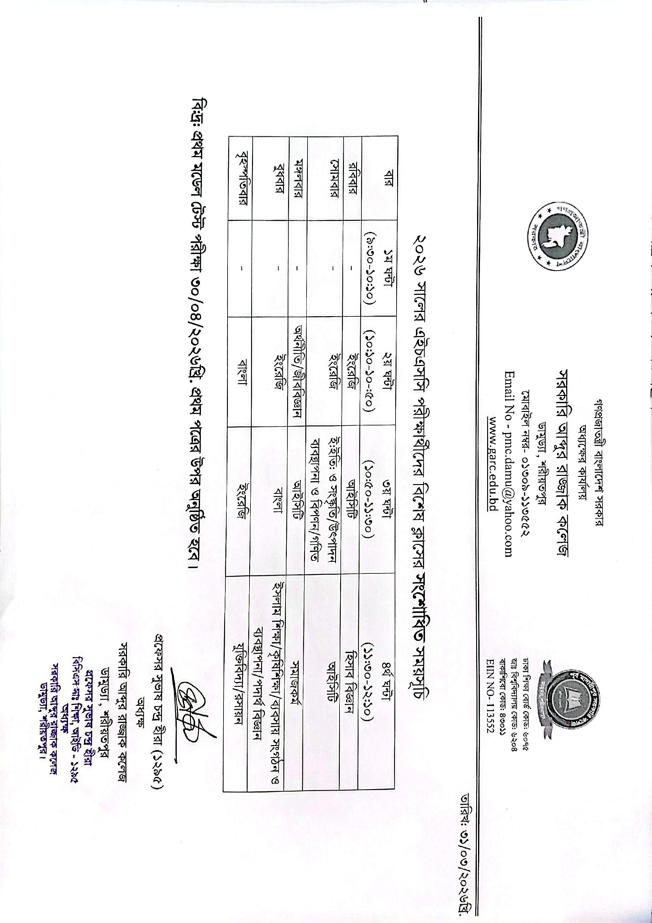 ২০২৬ সালের এইচএসসি পরীক্ষার্থীদের বিশেষ ক্লাসের সংশোধিত সময়সূচি।.....