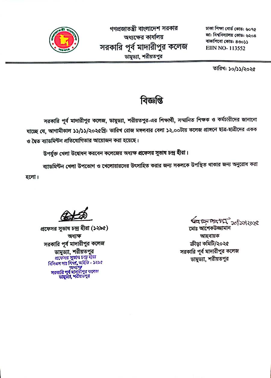 ব্যাডমিন্টন প্রতিযোগিতার বিজ্ঞপ্তি.....