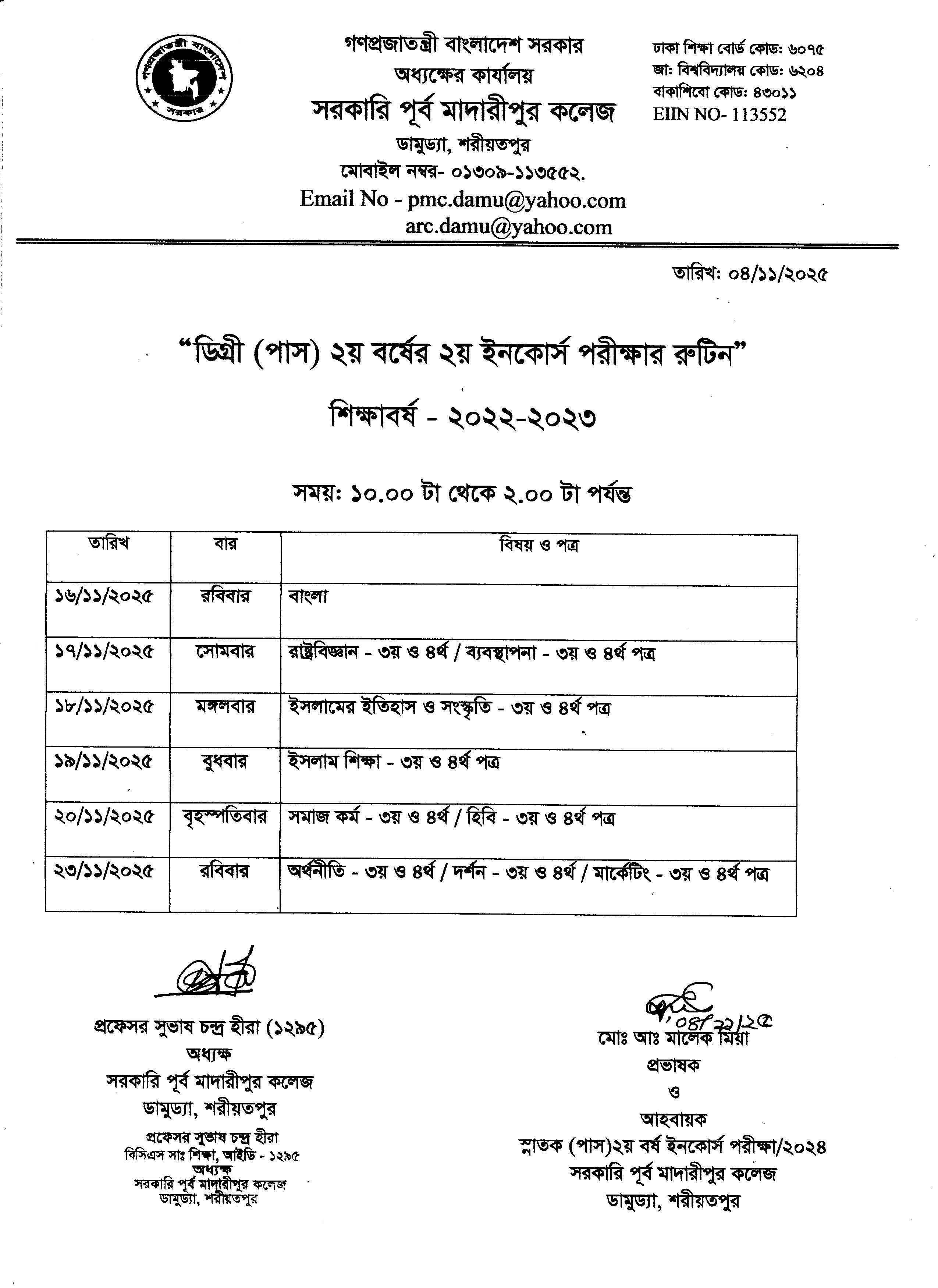 ডিগ্রি (পাস) ২য় বর্ষের ইনকোর্স ও নির্বাচনী পরীক্ষার রুটিন.....