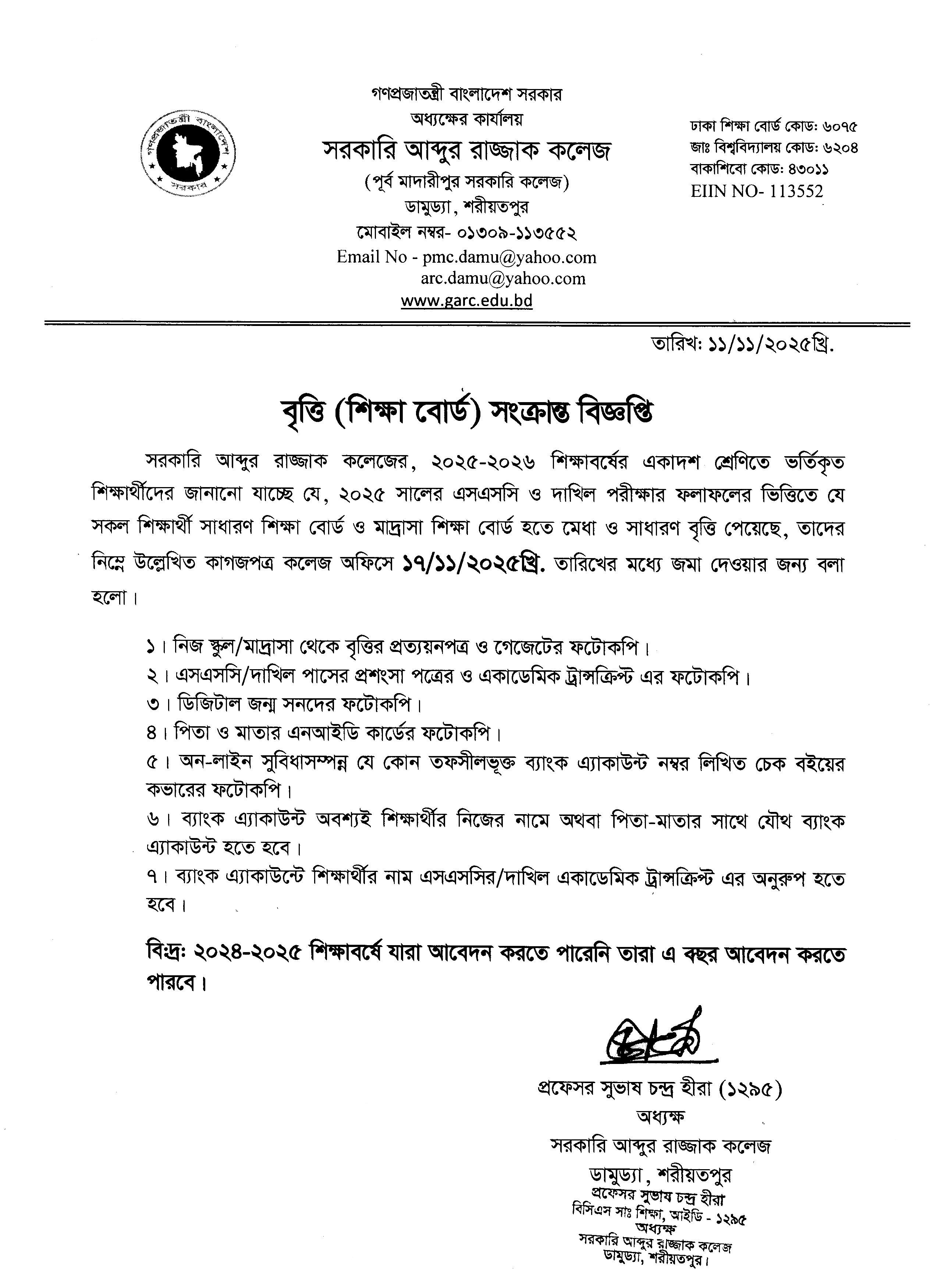 শিক্ষা বৃত্তি সংক্রান্ত বিজ্ঞপ্তি .....