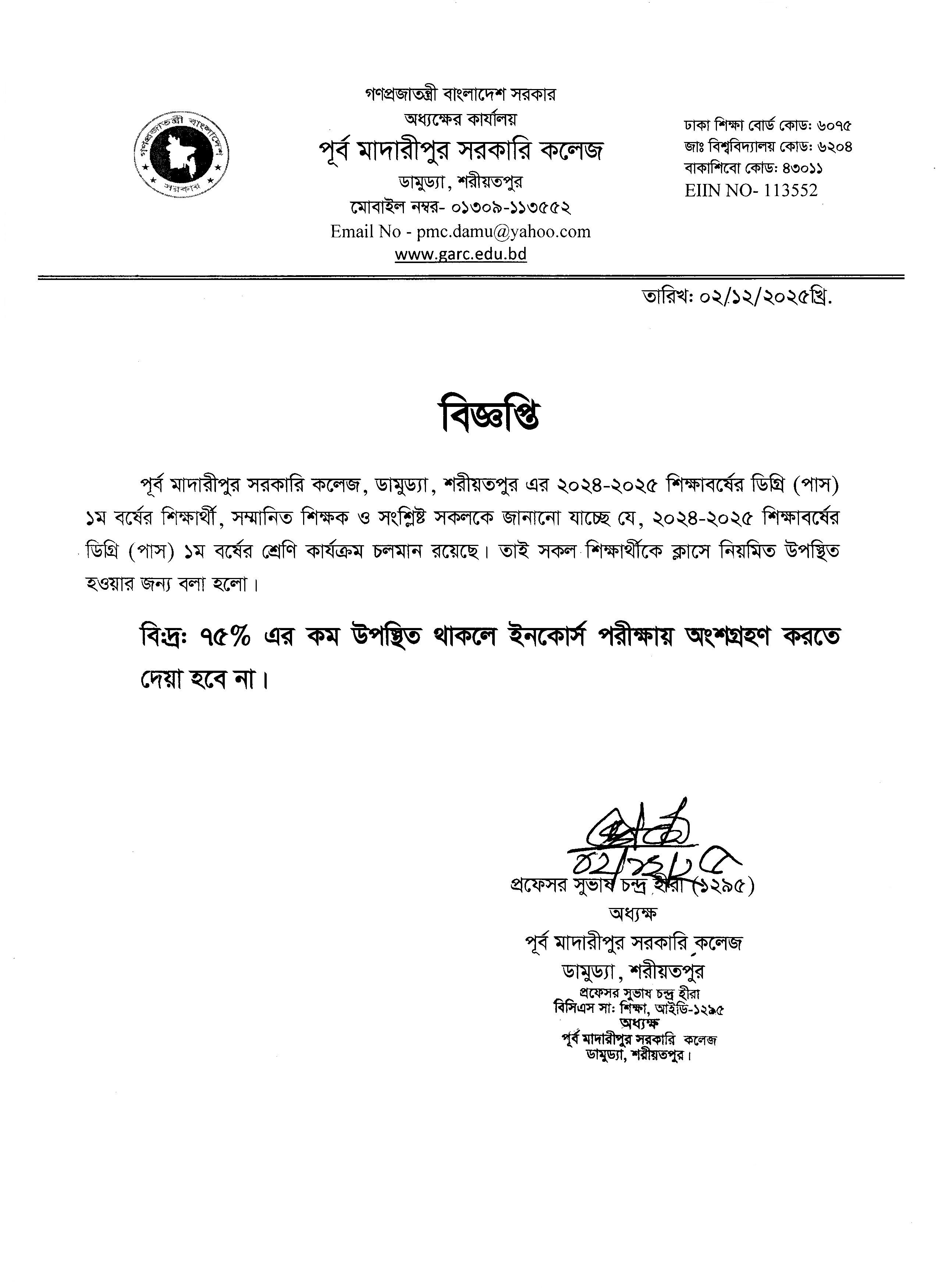 স্নাতক পাস ১ম বর্ষ পরীক্ষার ফরমপূরণের অনলাইন আবেদন ১৯/১০/২০২৫ইং তারিখ থেকে ২৭/১০/২০২৫ইং তারিখ পর্যন্ত।