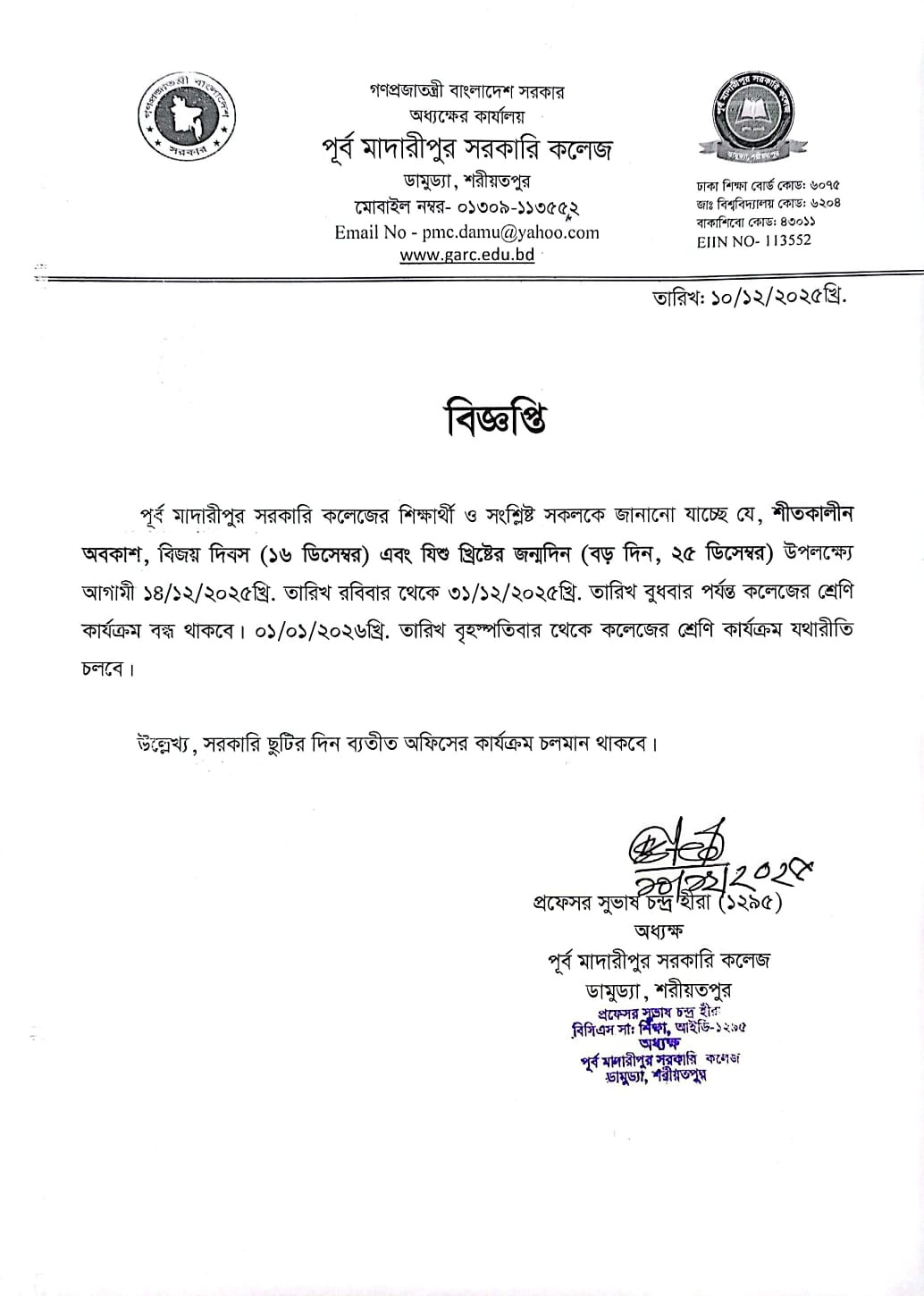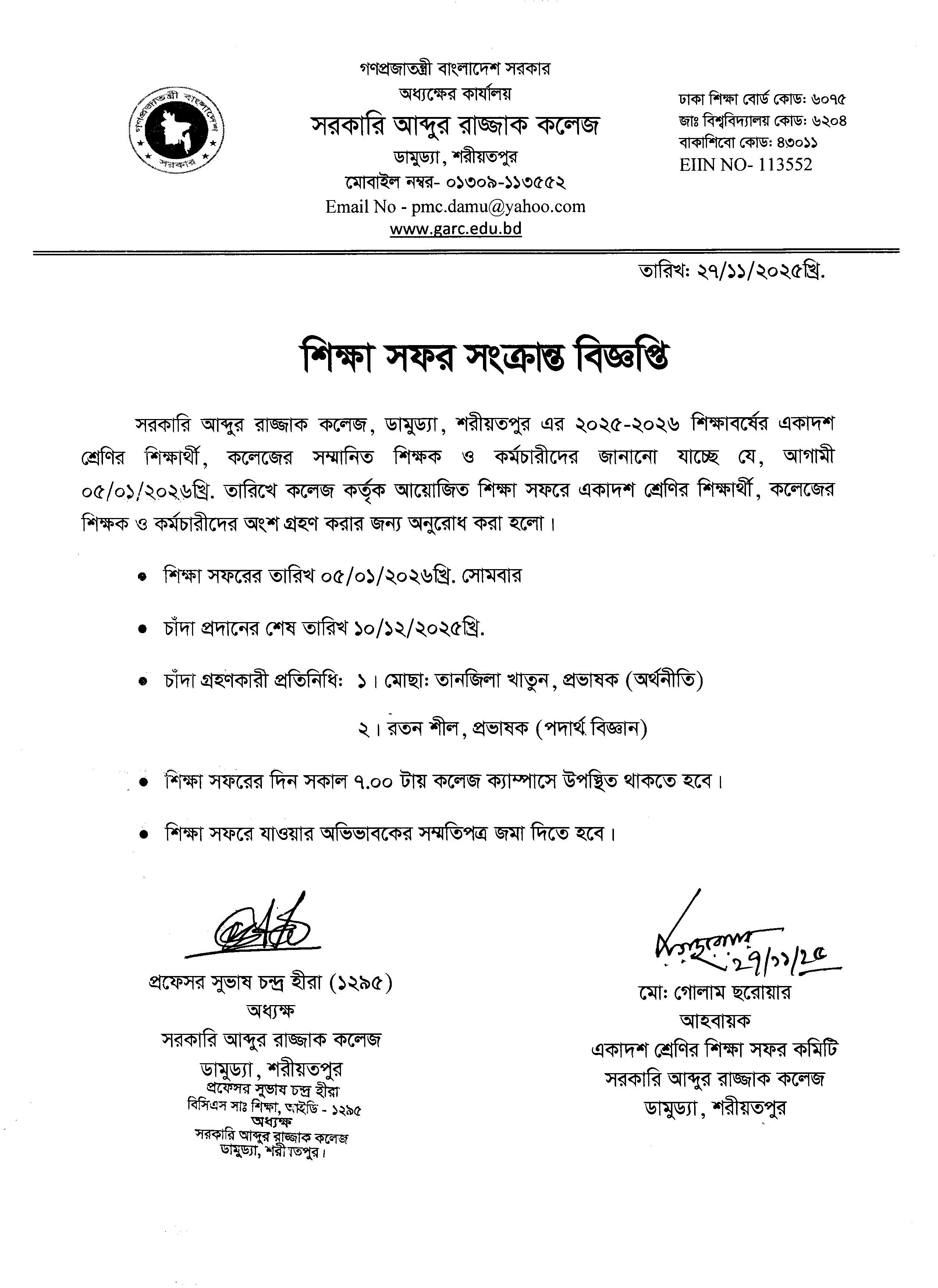 শিক্ষা সফর সংক্রান্ত বিজ্ঞপ্তি (একাদশ শ্রেণি).....