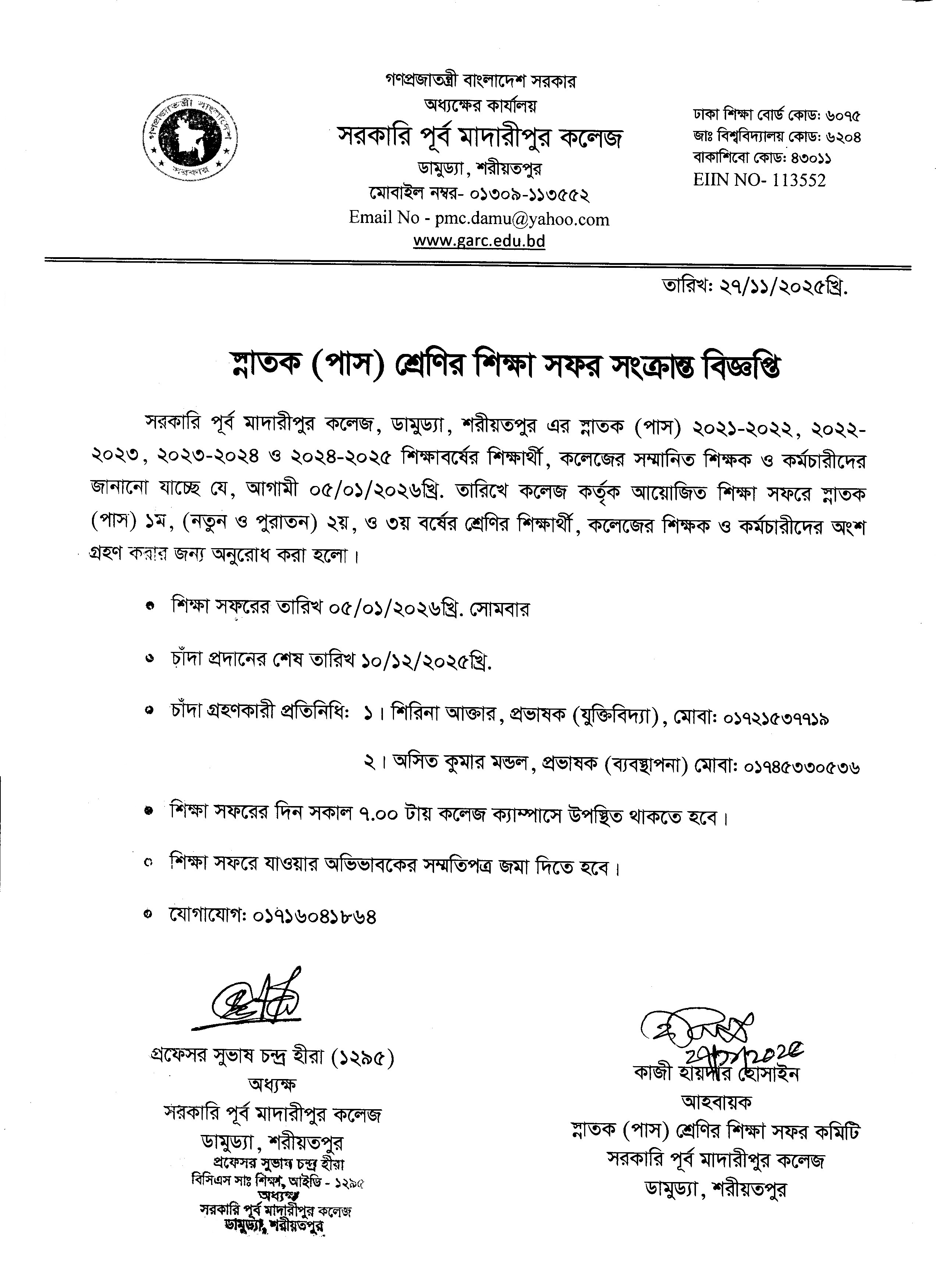 শিক্ষা সফর সংক্রান্ত বিজ্ঞপ্তি (ডিগ্রি পাস শ্রেণি).....