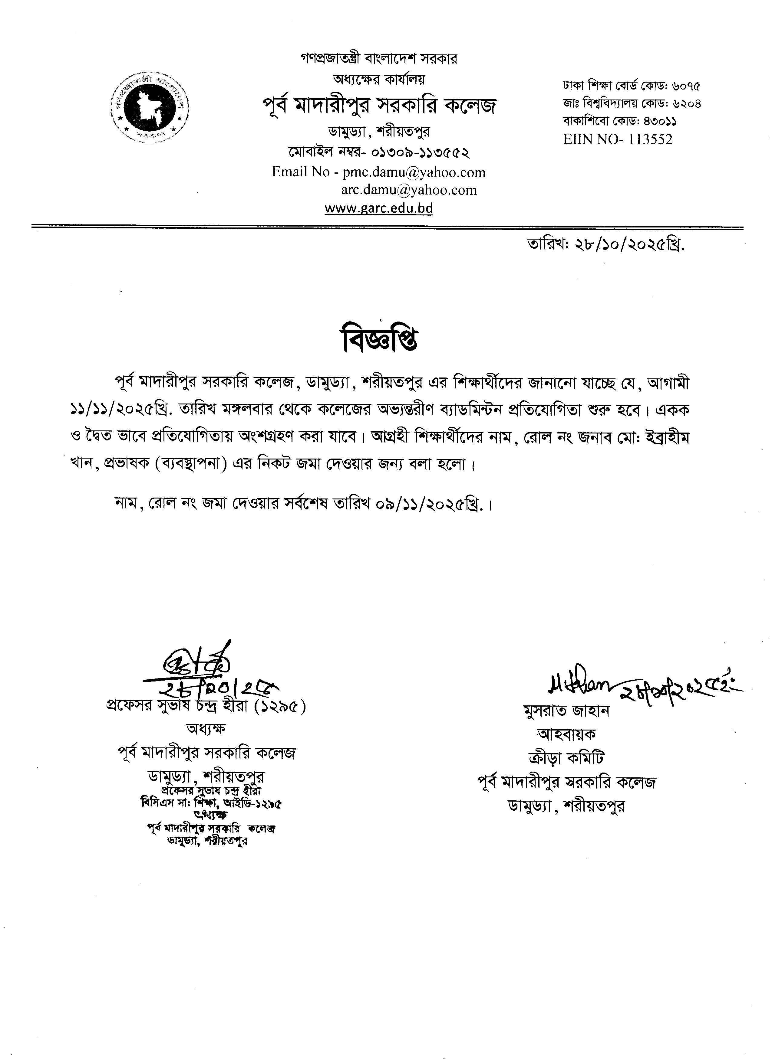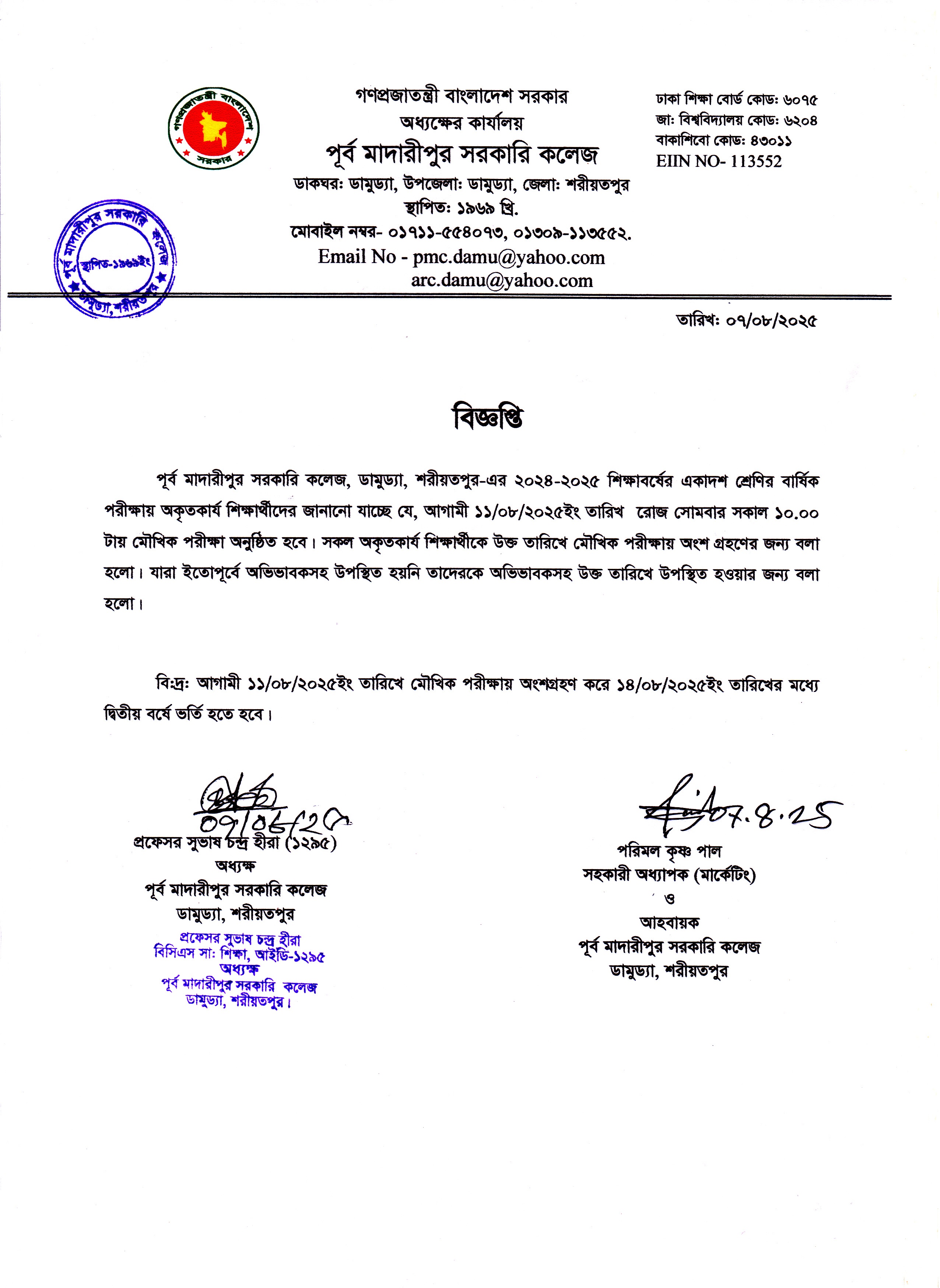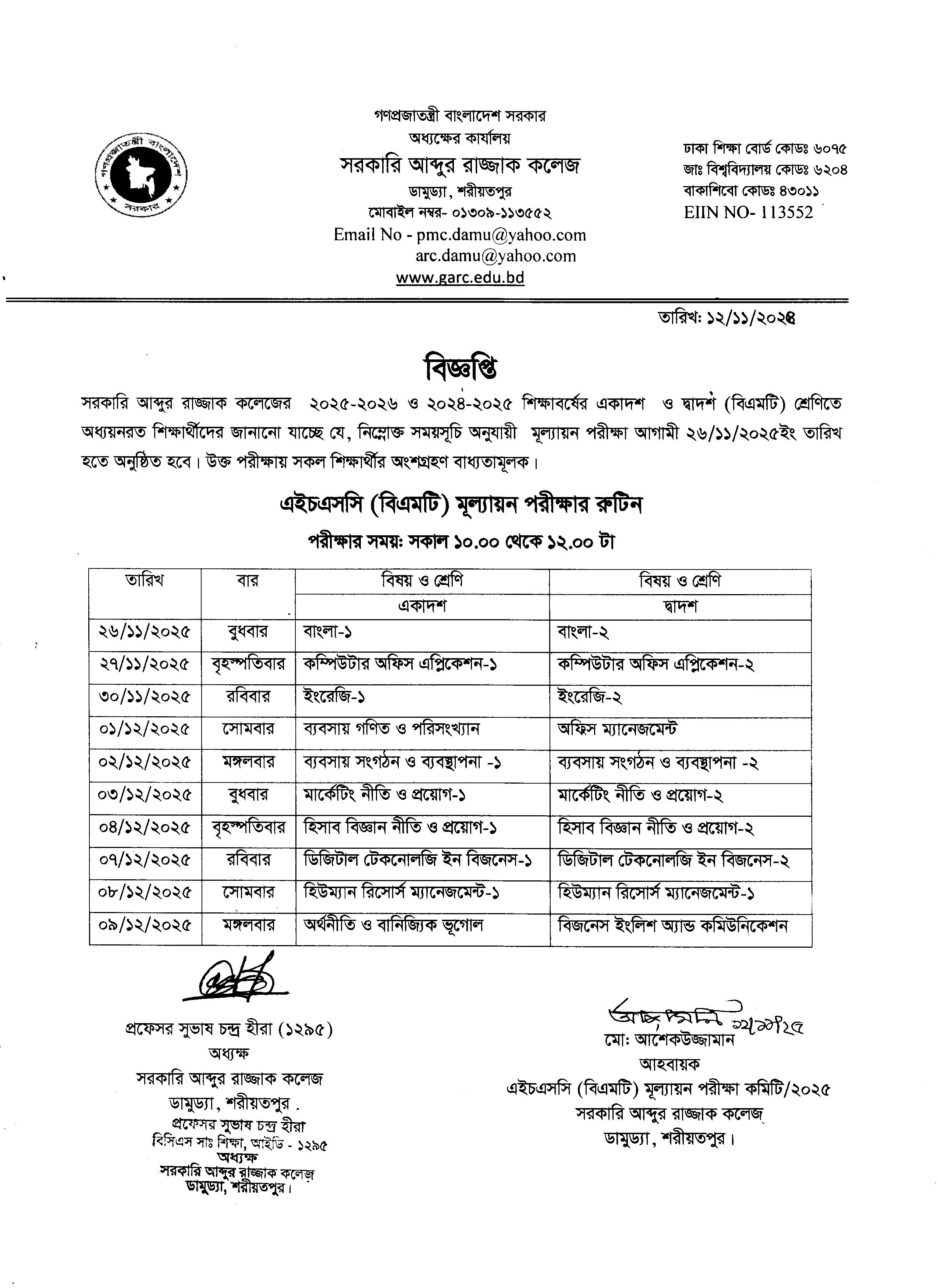 ২০২৫-২০২৬ শিক্ষাবর্ষে একাদশ শ্রেণিতে ভর্তির আবেদন, ফল প্রকাশ, ভর্তি, ও ক্লাস শুরু সংক্রান্ত বিজ্ঞপ্তি। |