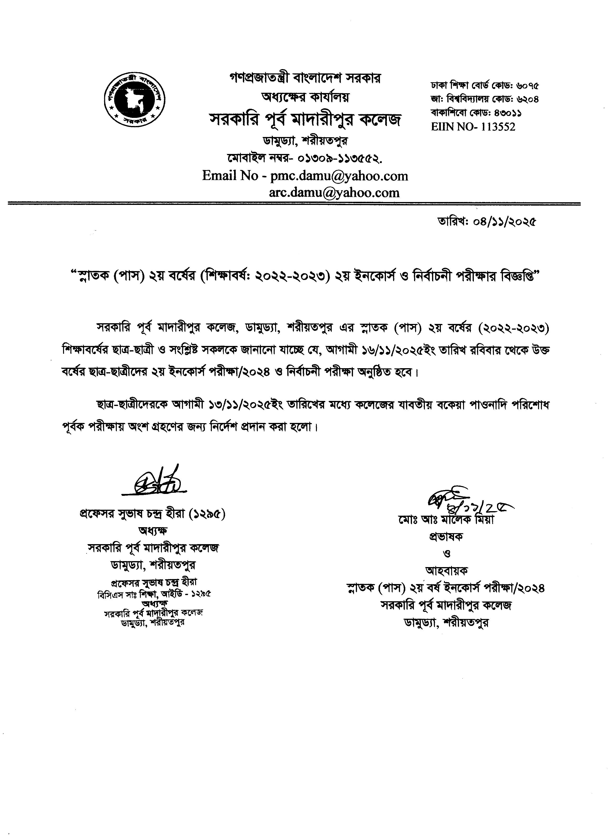ডিগ্রি (পাস) ২য় বর্ষের ইনকোর্স ও নির্বাচনী পরীক্ষার বিজ্ঞপ্তি |