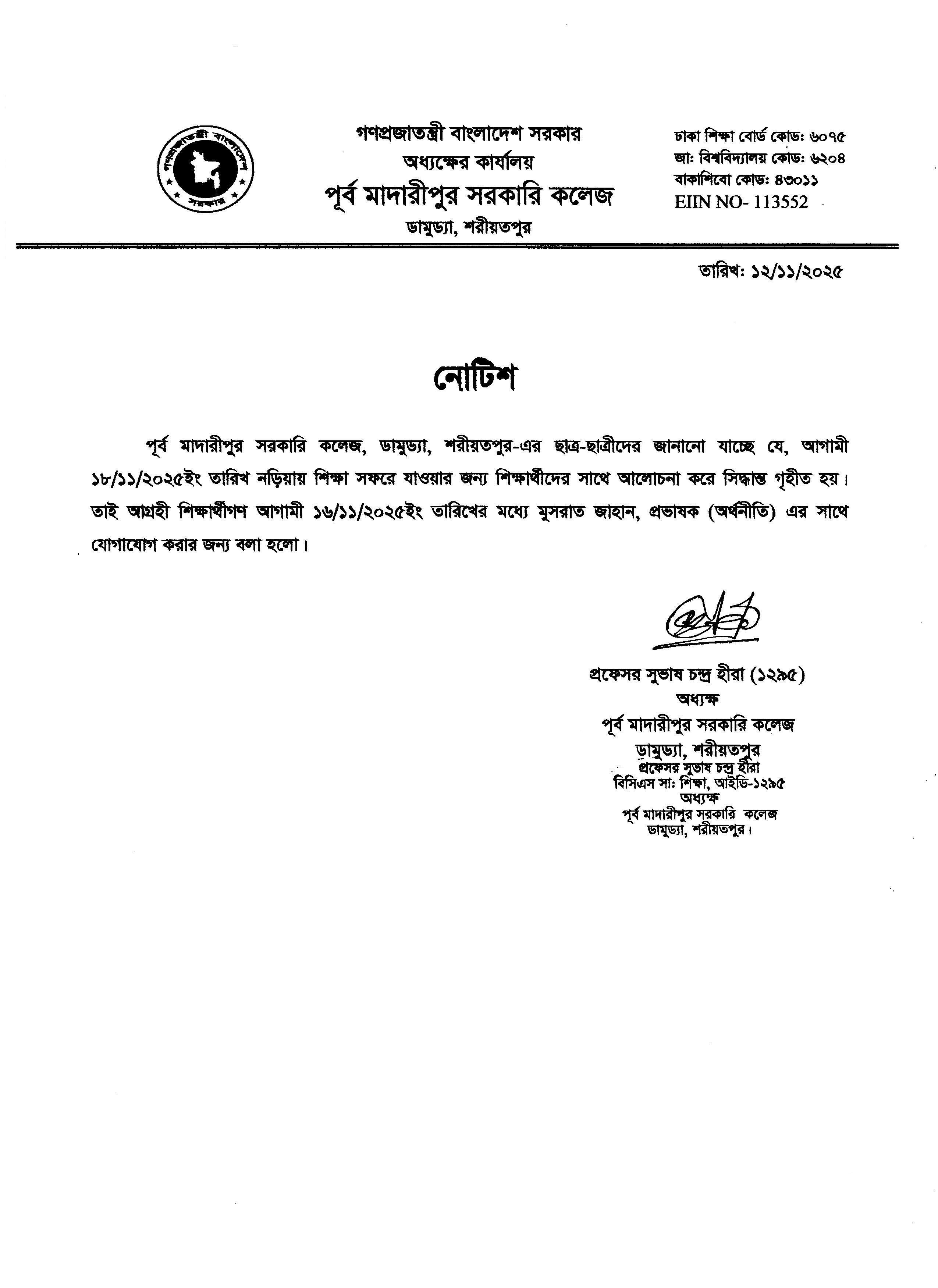 শিক্ষা সফর সংক্রান্ত বিজ্ঞপ্তি (একাদশ শ্রেণি) |