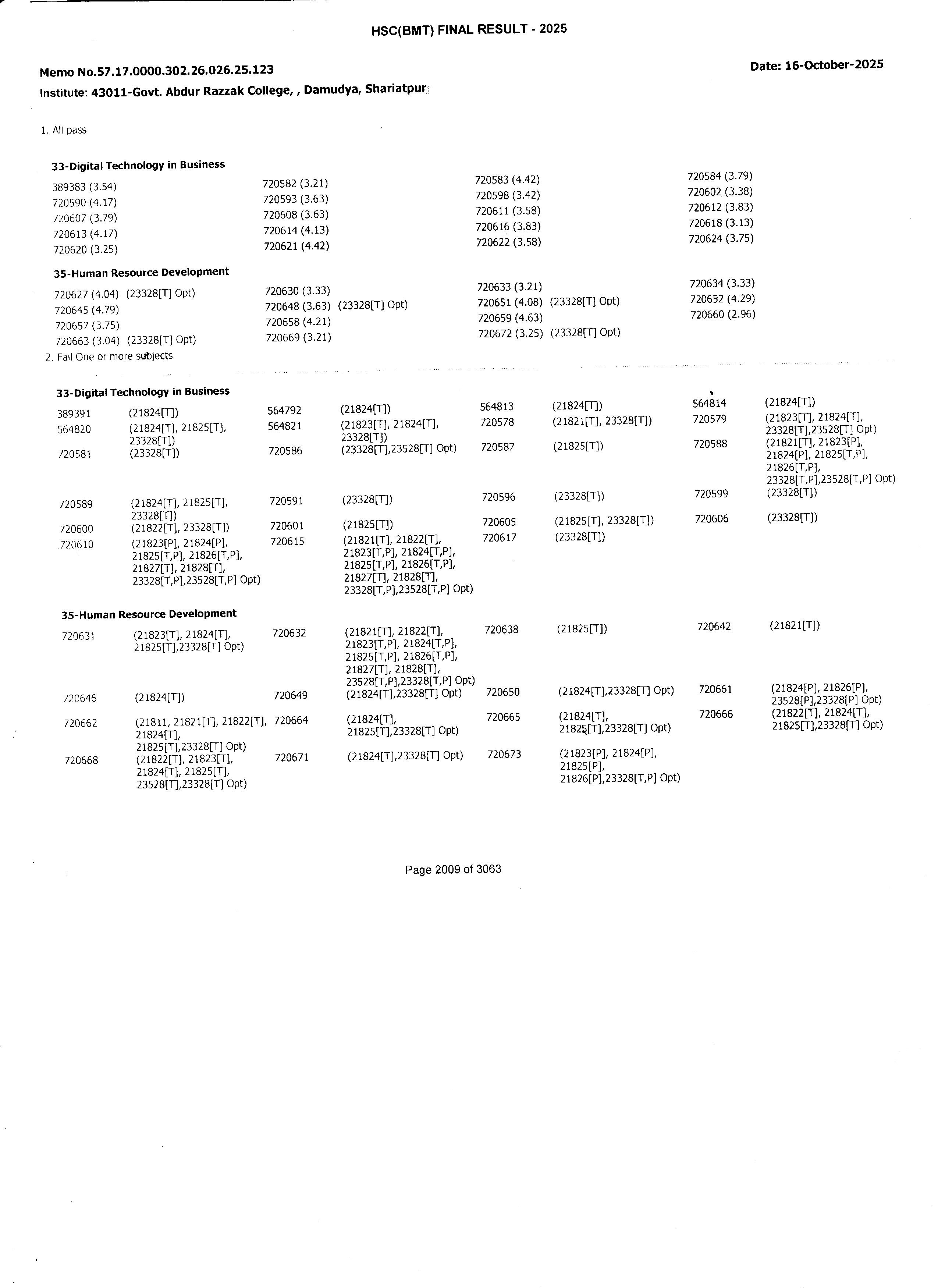 এইচ.এস.সি (বিএমটি) পরীক্ষা/২০২৫ এর ফলাফল।